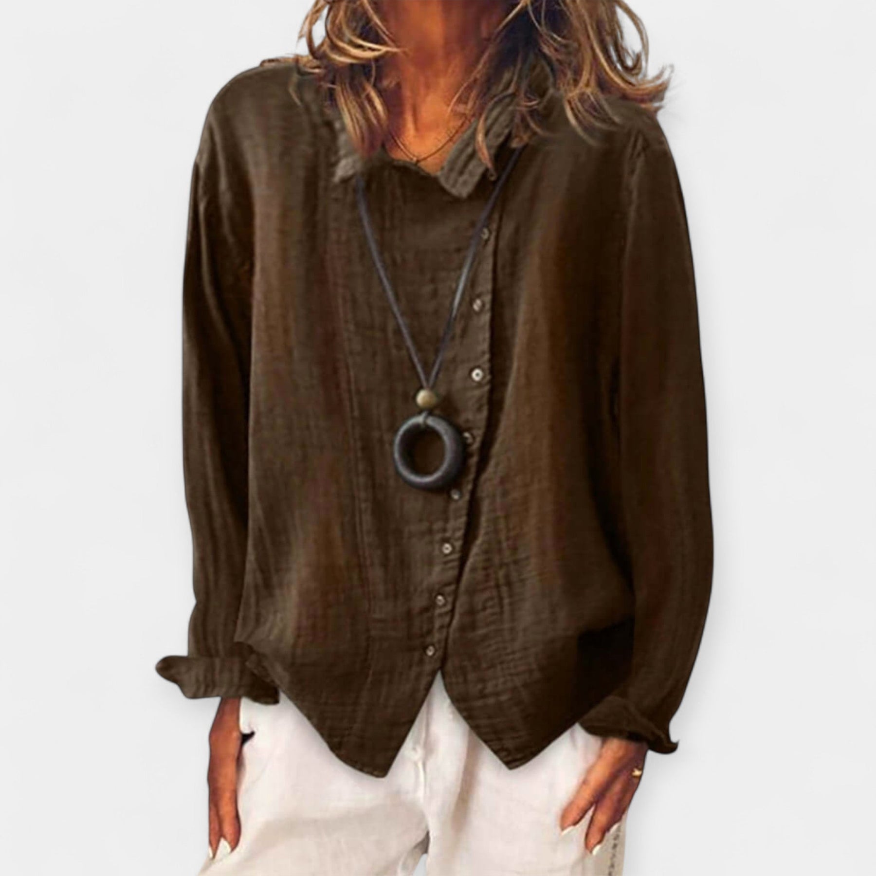 Made from a lightweight blend of cotton and linen for effortless comfort and style. With a relaxed H-line fit and long sleeves, it’s perfect for spring and summer days. Pair it with leggings, jeans, or wear it alone for an effortless yet polished look.