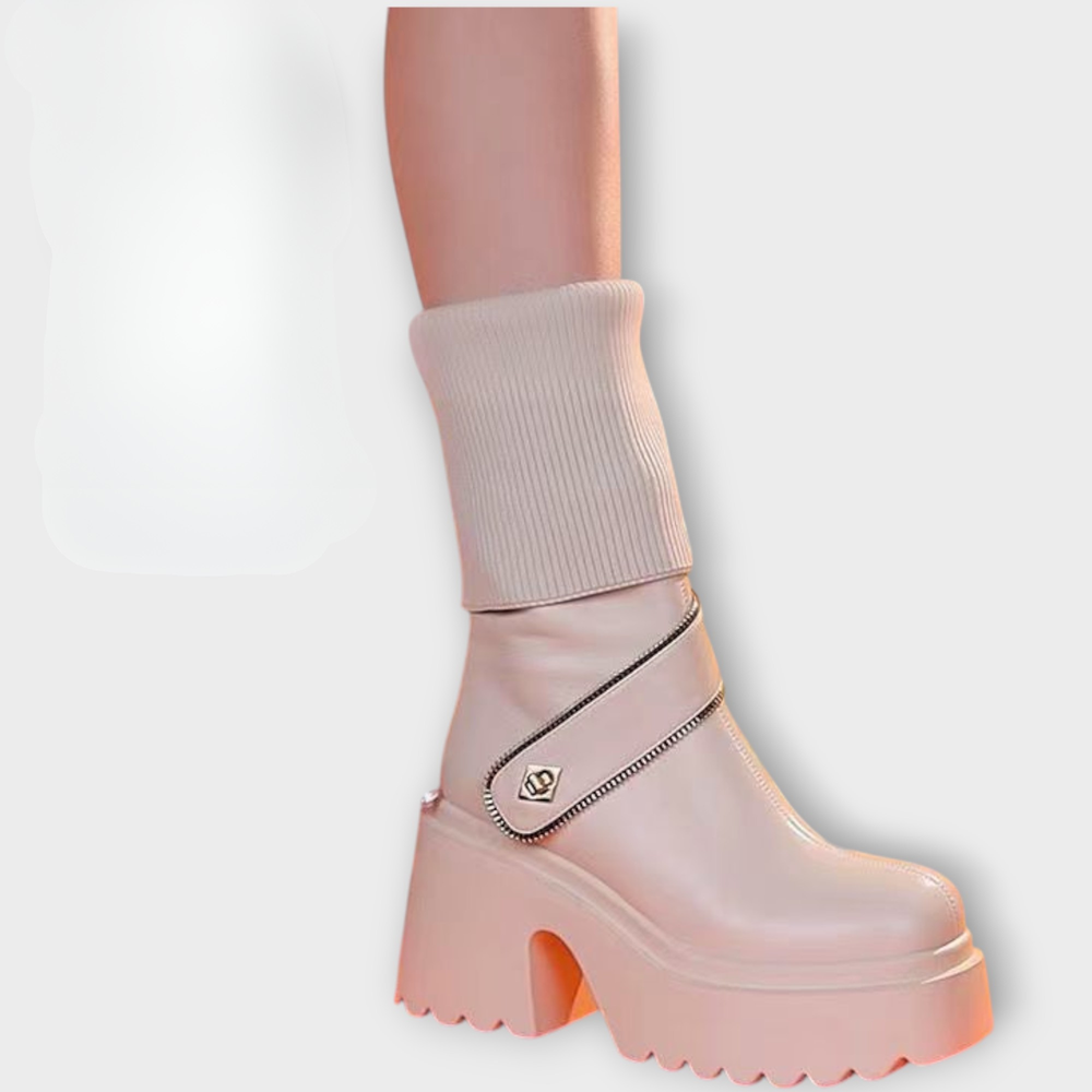 Platform Knit Cuff Ankle Boots