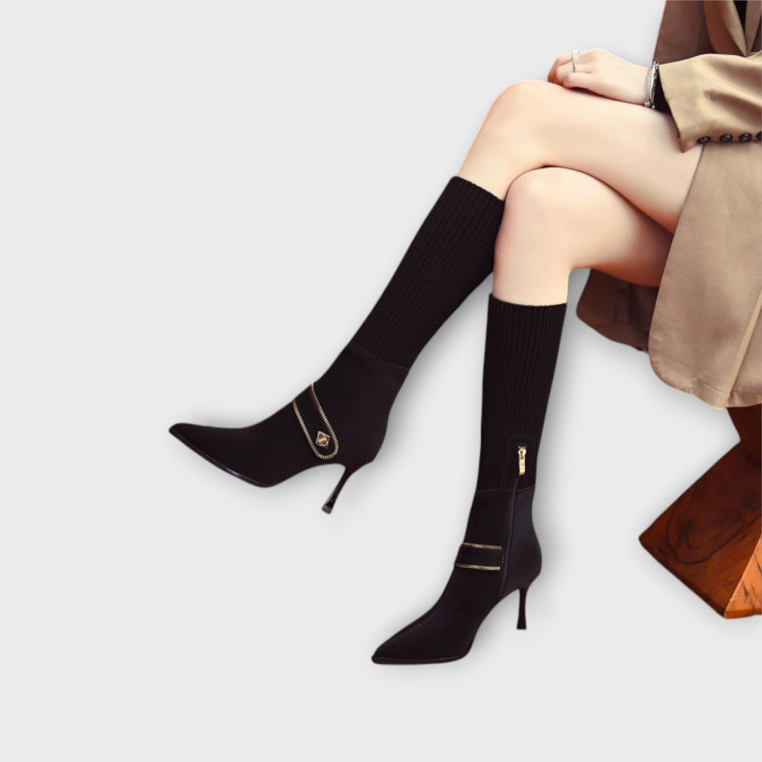 Chic Knit-Top Heeled Boots