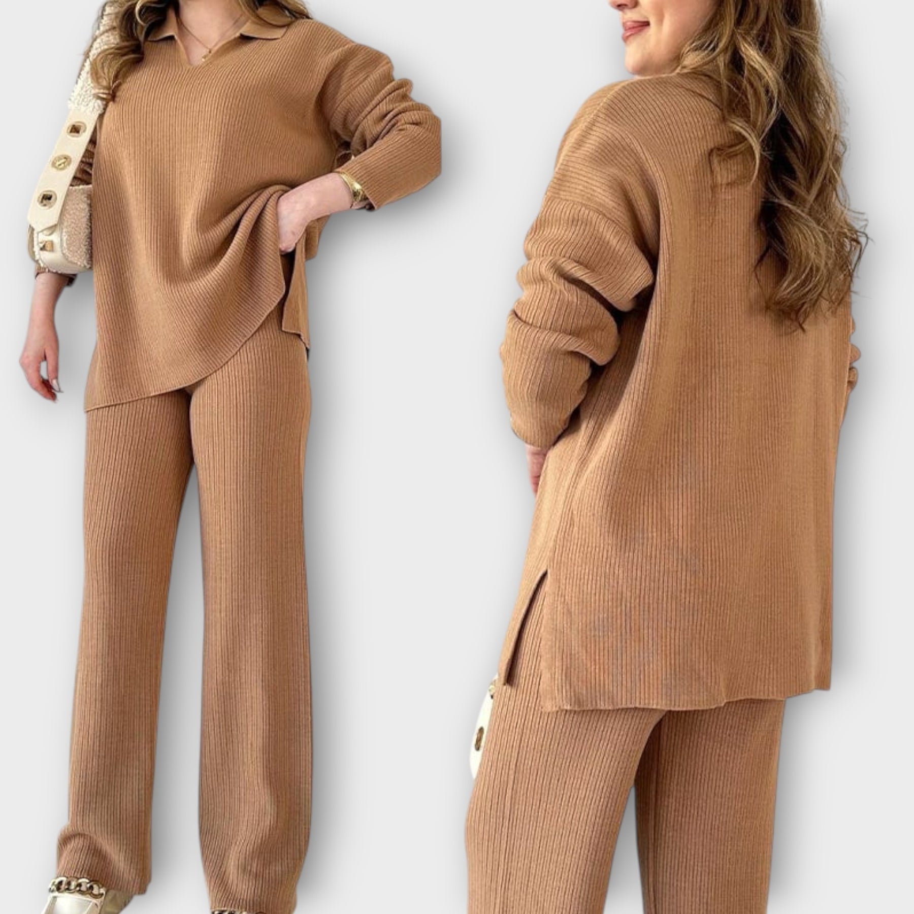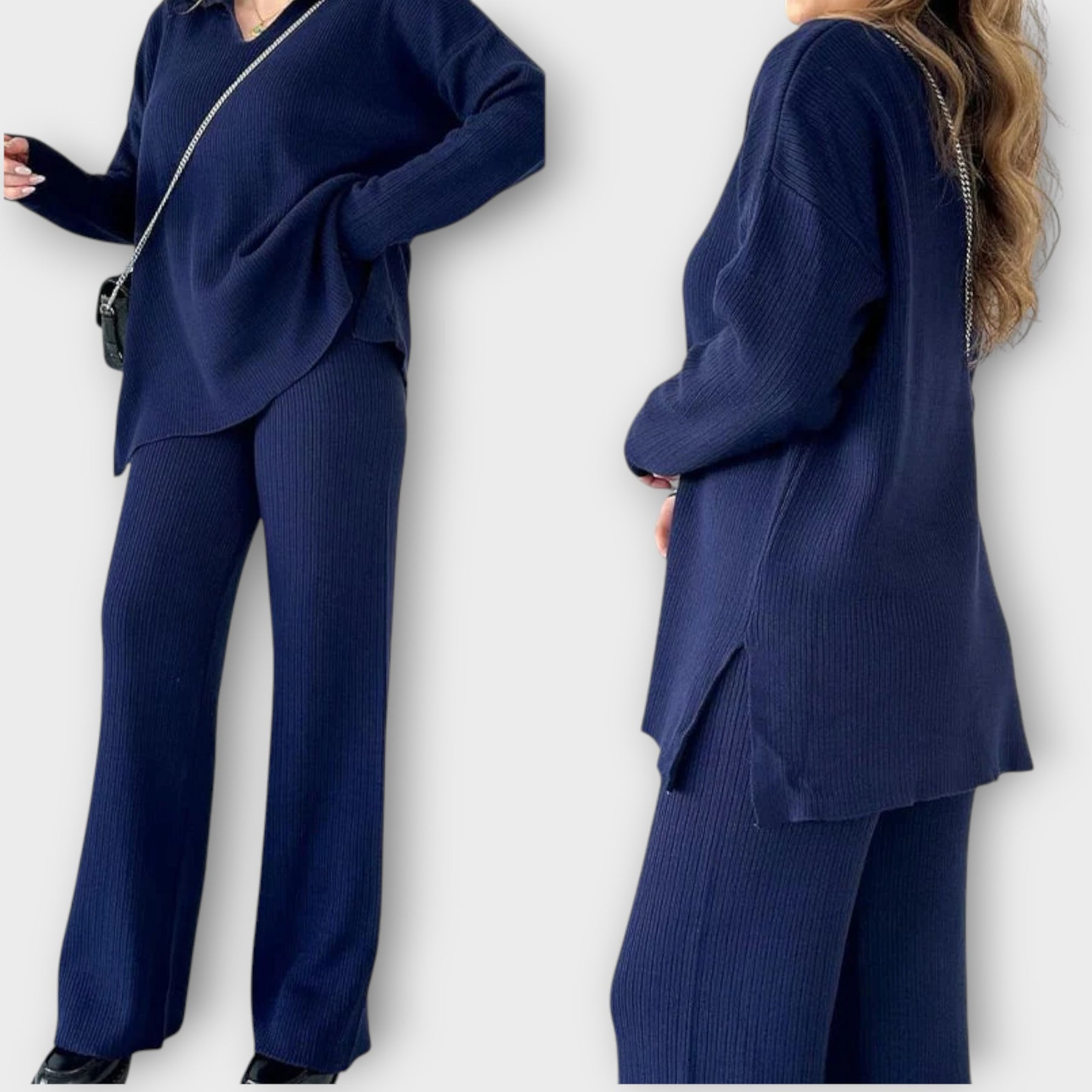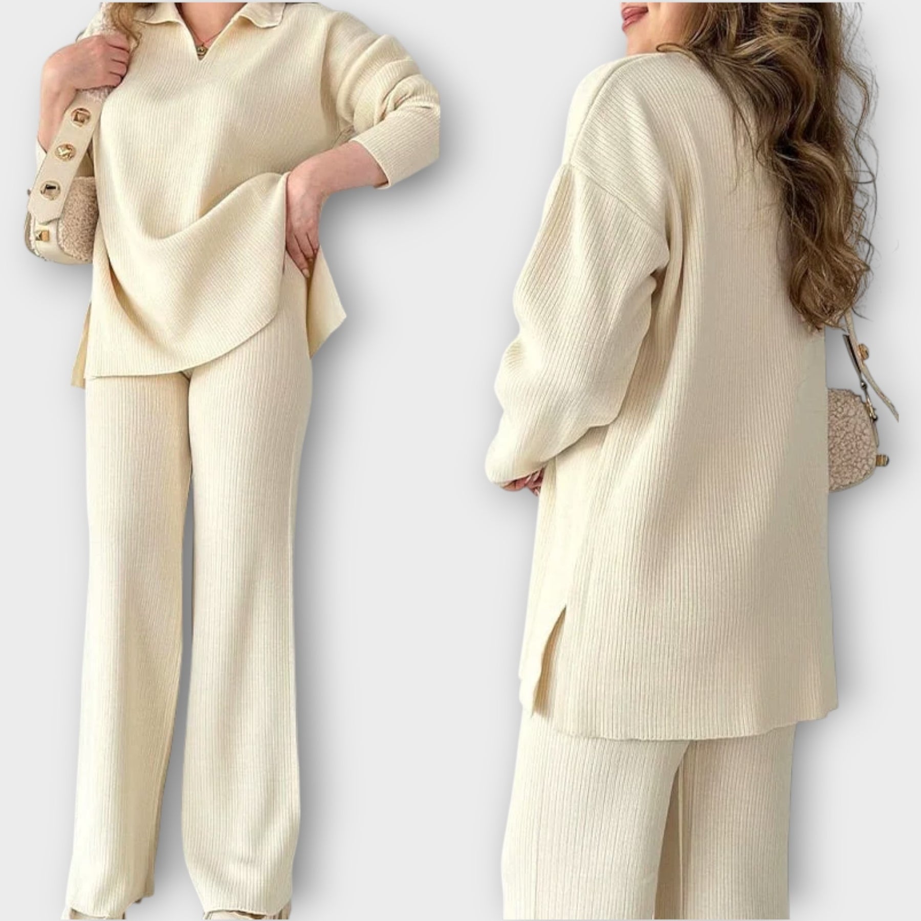 This ribbed two-piece lounge set offers effortless comfort with a relaxed, modern silhouette perfect for everyday wear. The soft knit fabric drapes beautifully, making it ideal for staying comfy at home or styling casually on the go.
