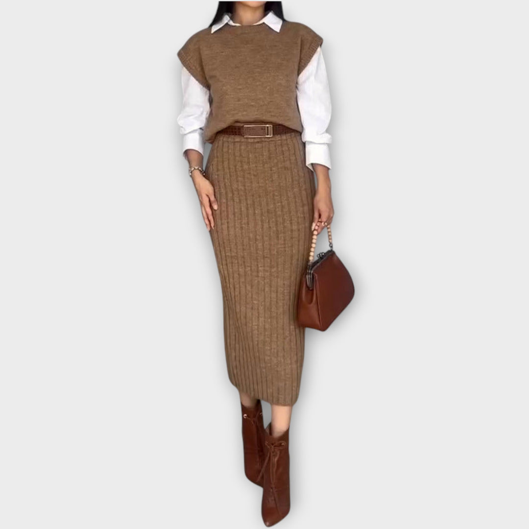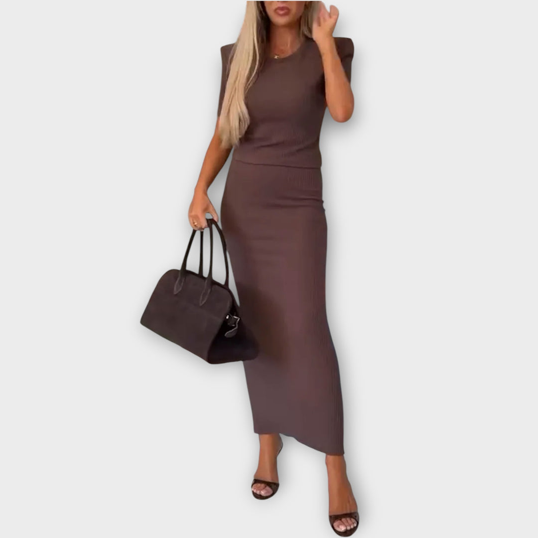 Elegant Ribbed Two-Piece Lounge Dress Set