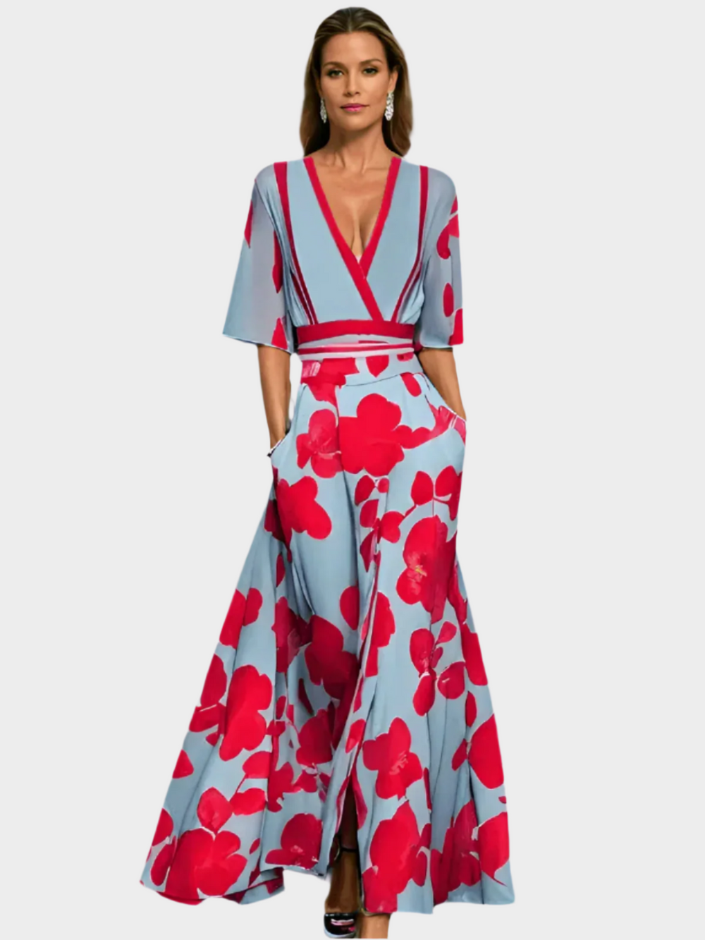 Long Floral Dress with V-Neck