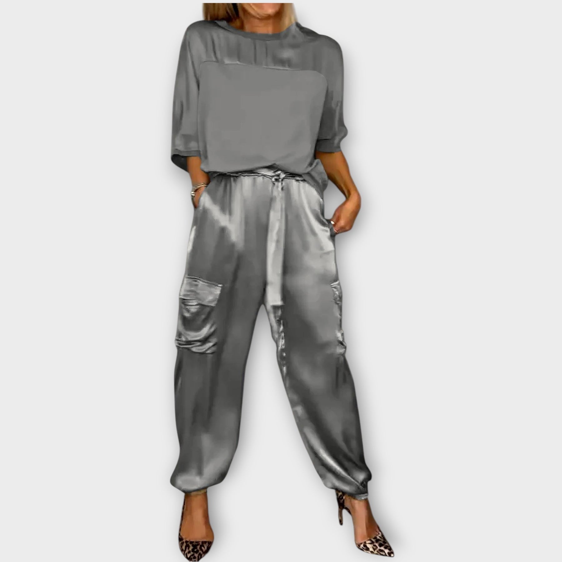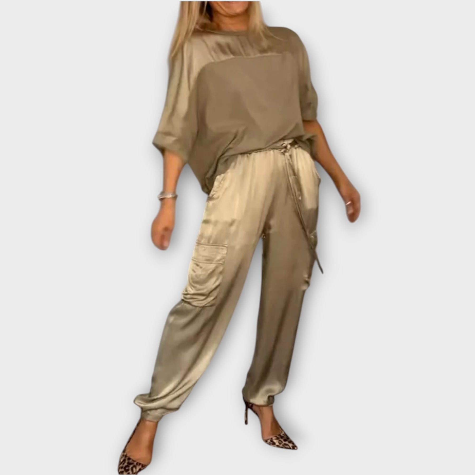 This effortlessly chic lounge set blends comfort with modern edge, featuring a relaxed fit and subtle cargo-style details. Dress it up with heels or keep it casual — it moves with you and always looks put-together.