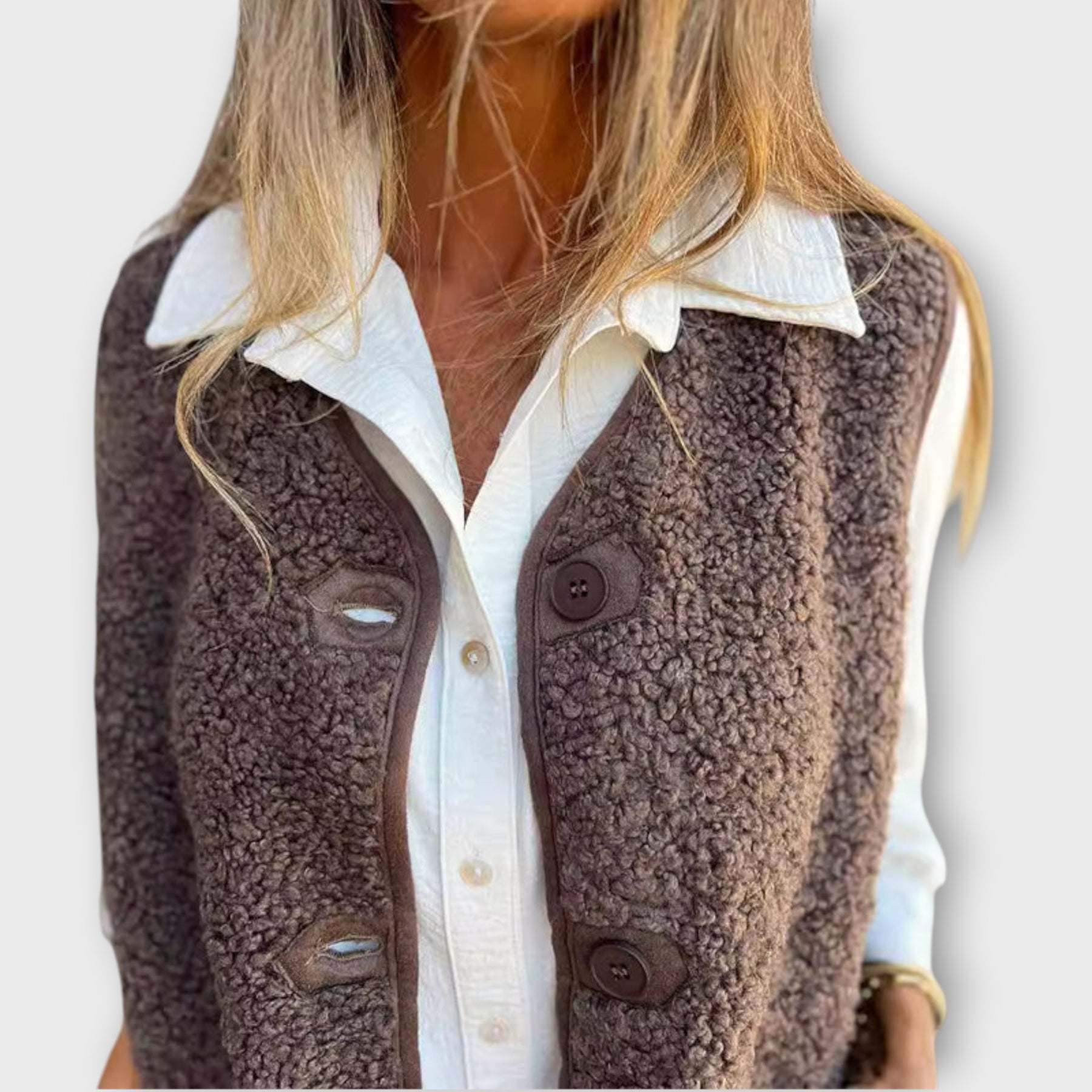 Stay warm and stylish with this ultra-soft sherpa vest designed for effortless layering. Its relaxed fit and textured finish add the perfect touch of comfort and chic to any everyday outfit.